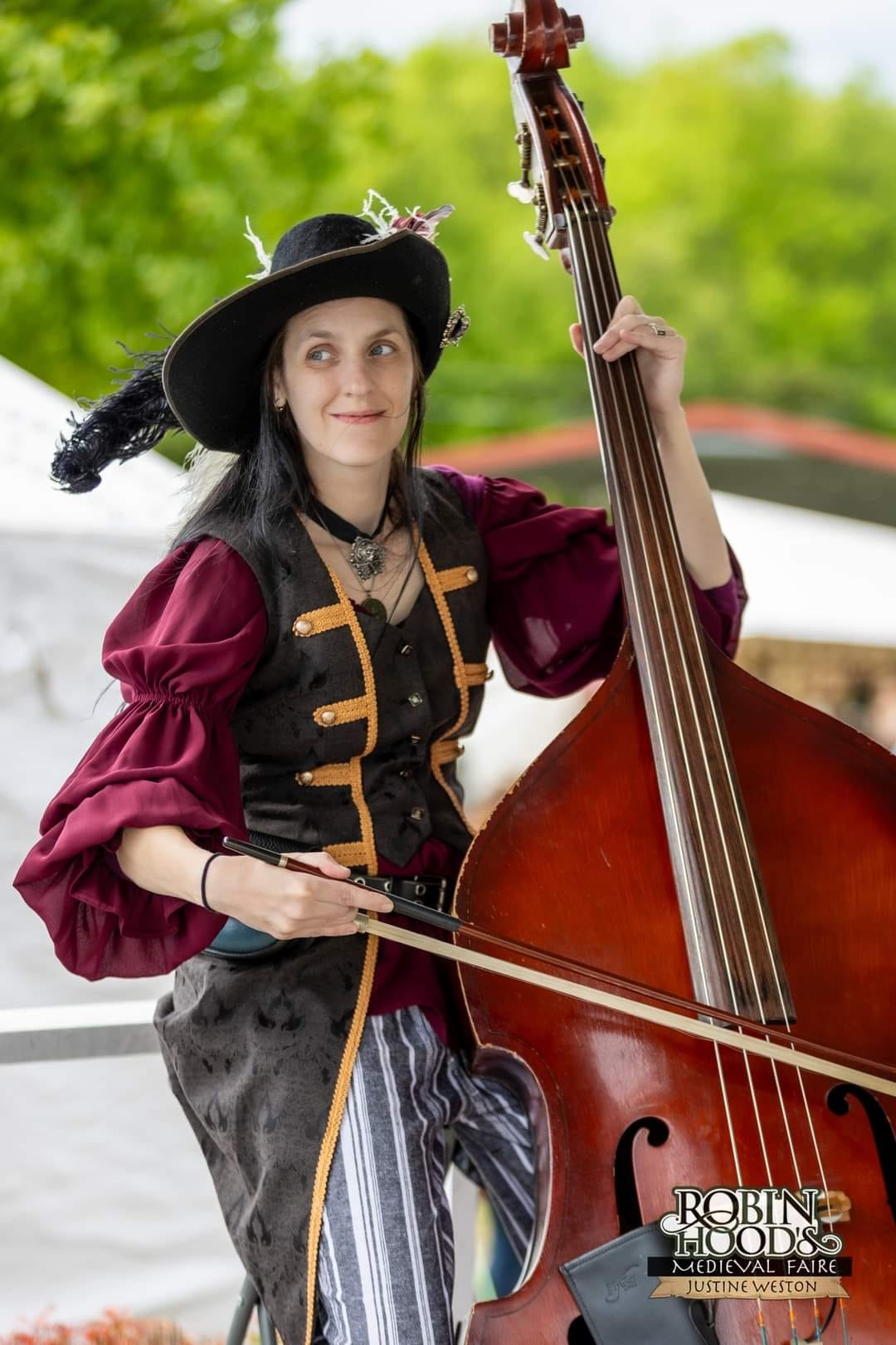 You can spot her pirate persona, Admiral Bowman, at Renaissance Faires. She played with ‘Below the Gaff’ for 10 years and now sits in with many bands. She currently plays with the ‘Roving Corsairs.’